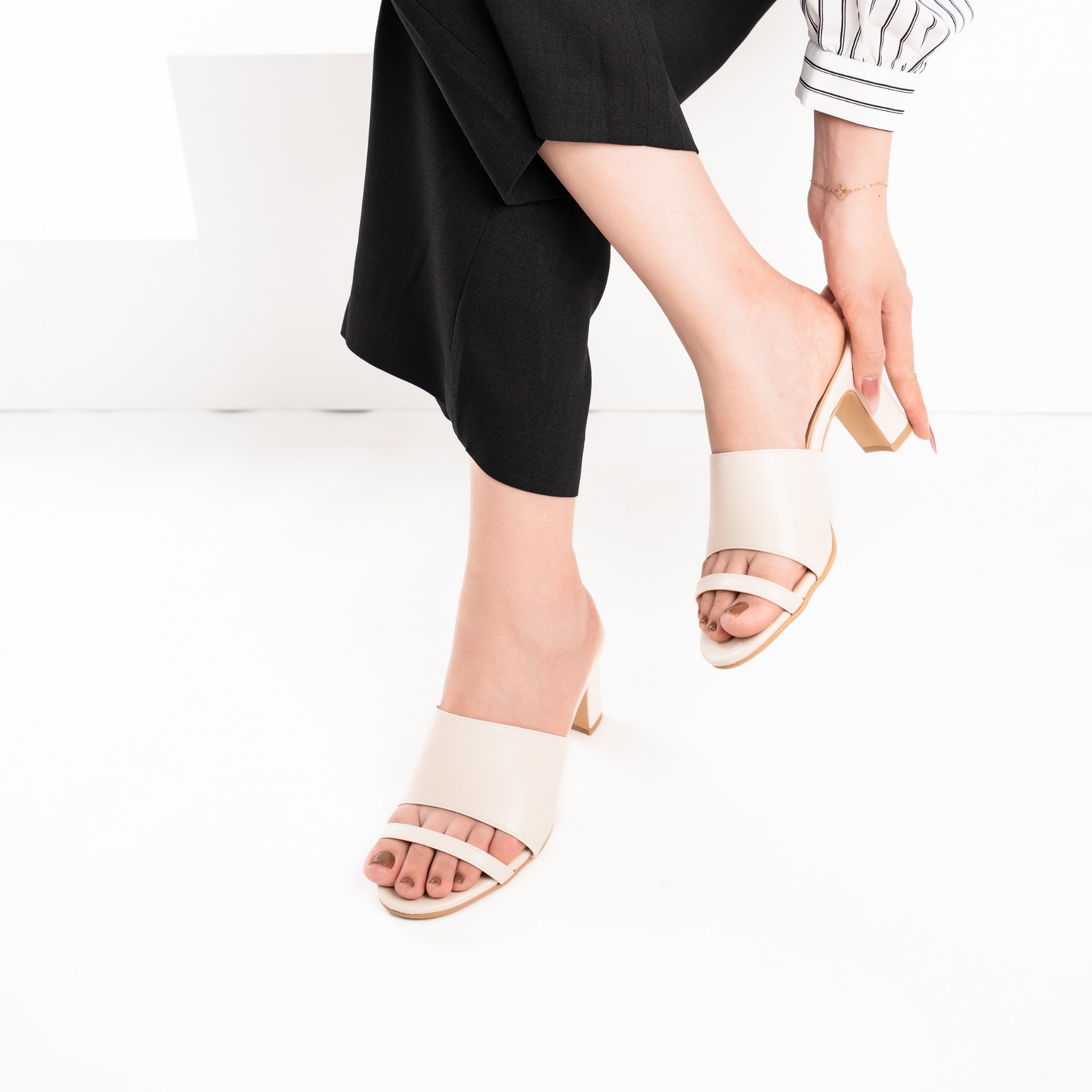 Với chiều cao gót 7cm dạng gót vuông, đôi dép này giúp bạn "hack" dáng một cách hiệu quả, tôn lên vẻ thanh mảnh của đôi chân. Gót vuông được thiết kế đặc biệt để phân tán lực đều, giảm áp lực lên mũi chân, mang lại cảm giác vững chãi và thoải mái đáng kinh ngạc, ngay cả khi mang trong thời gian dài.