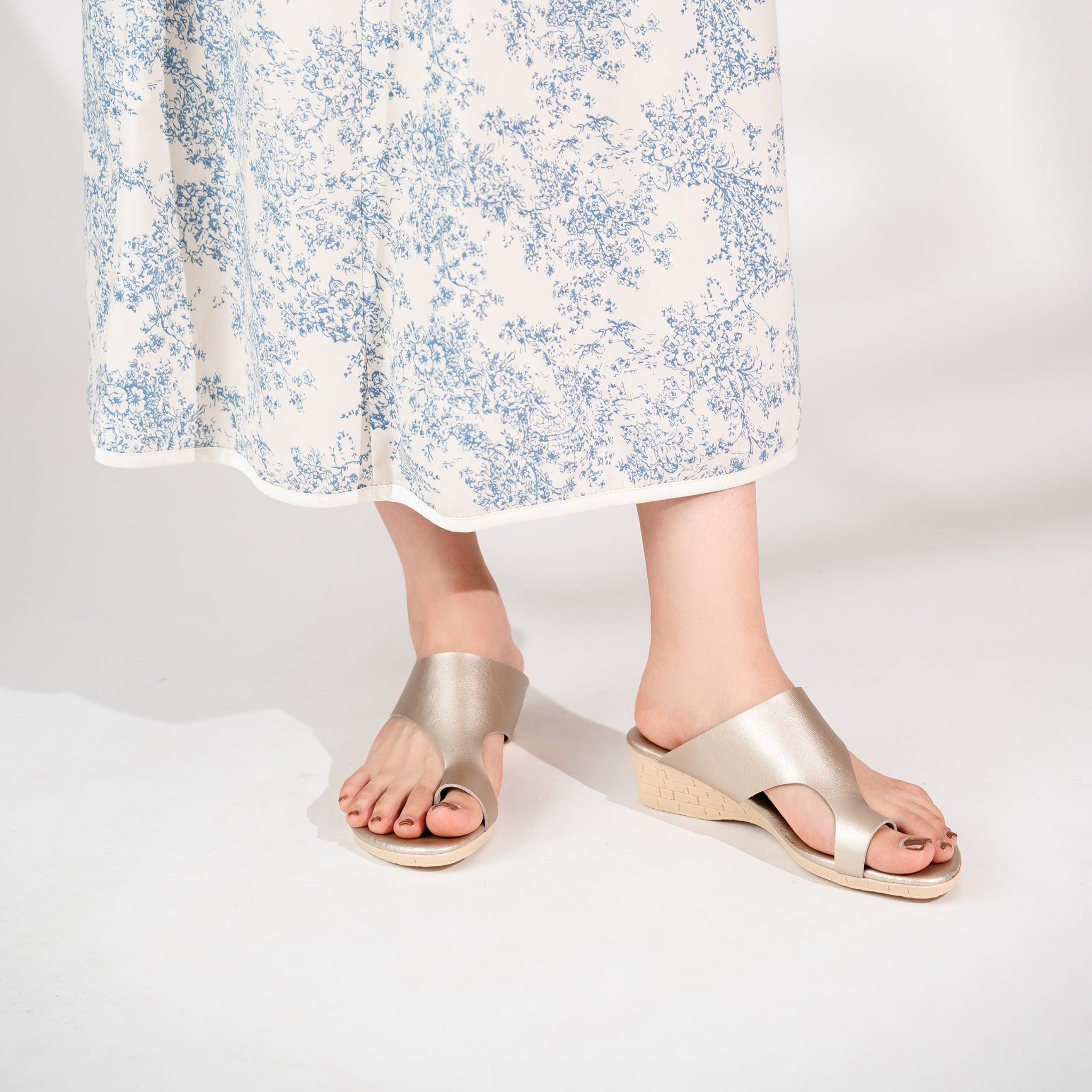 Lớp lót trong được làm từ da tổng hợp mềm, tạo cảm giác mượt mà cho lòng bàn chân khi tiếp xúc. Bên dưới là lớp đệm mút đàn hồi, có tác dụng giảm sốc và phân tán lực tác động khi đi lại, đặc biệt phù hợp với phụ nữ trung niên thường xuyên đứng hoặc di chuyển trong thời gian dài. Phần đệm này cũng giúp hạn chế tình trạng đau gan bàn chân – một vấn đề phổ biến ở độ tuổi từ 40 trở lên.