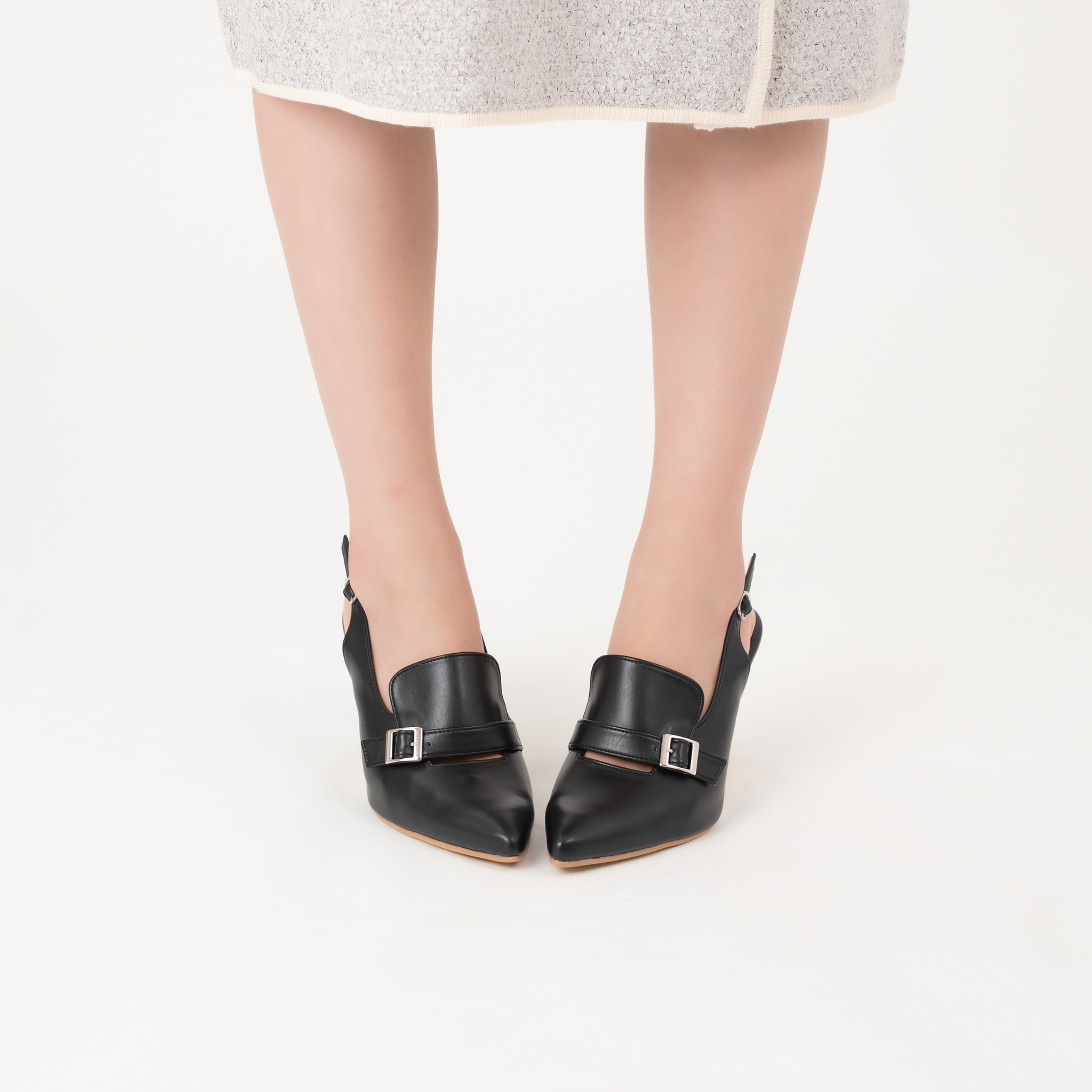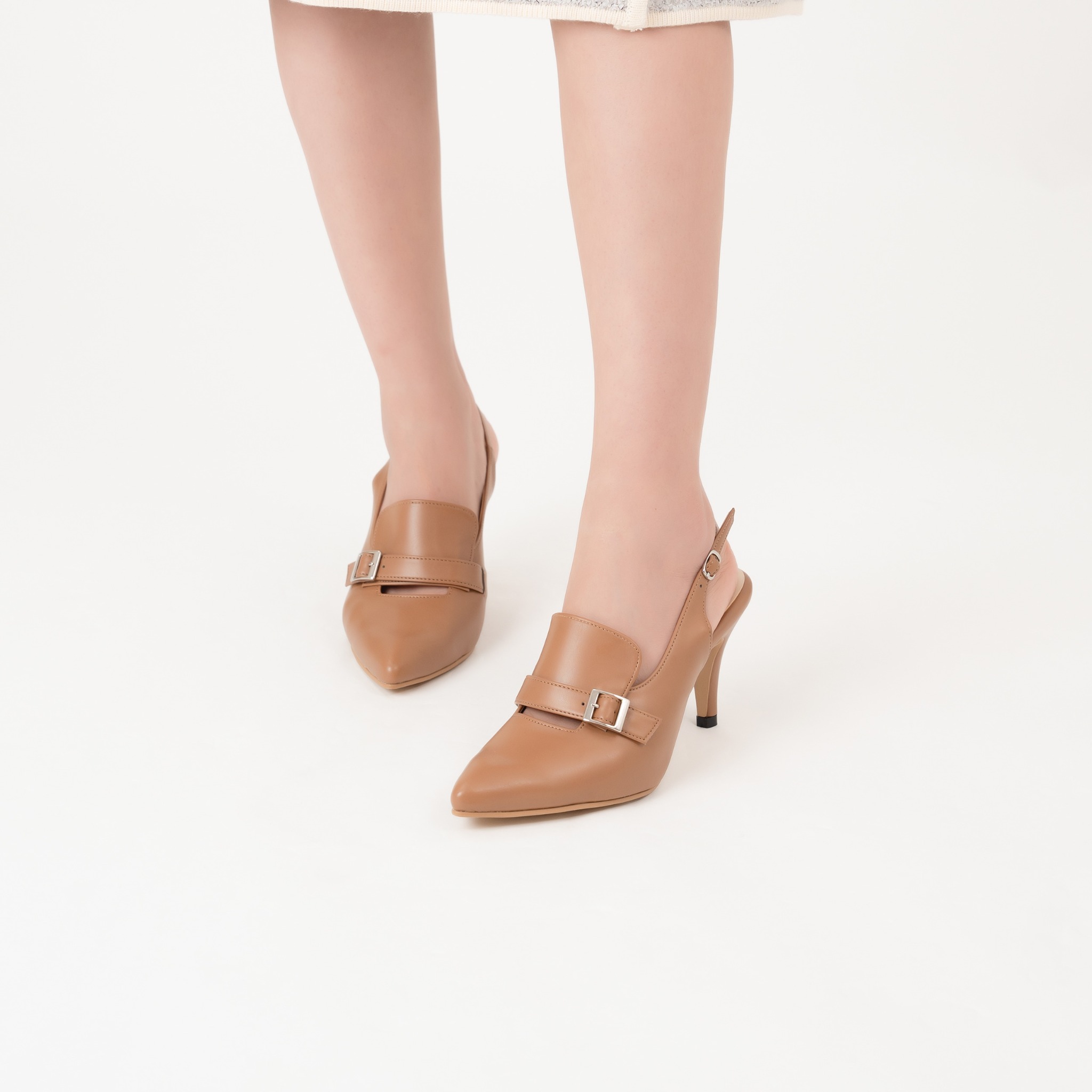 Thiết kế mũi nhọn tinh tế tạo cảm giác thanh thoát và giúp đôi chân trông thon gọn hơn. Thiết kế quai sau hở gót giúp đôi giày vừa thoáng khí, vừa giữ được sự chắc chắn khi di chuyển. Dây có khóa điều chỉnh được để phù hợp với kích cỡ cổ chân người mang. Thiết kế loafer slingback cao gót mang lại sự kết hợp hoàn hảo giữa tính linh hoạt và sự sành điệu, phù hợp cho cả ngày làm việc dài hoặc những buổi họp mặt quan trọng.