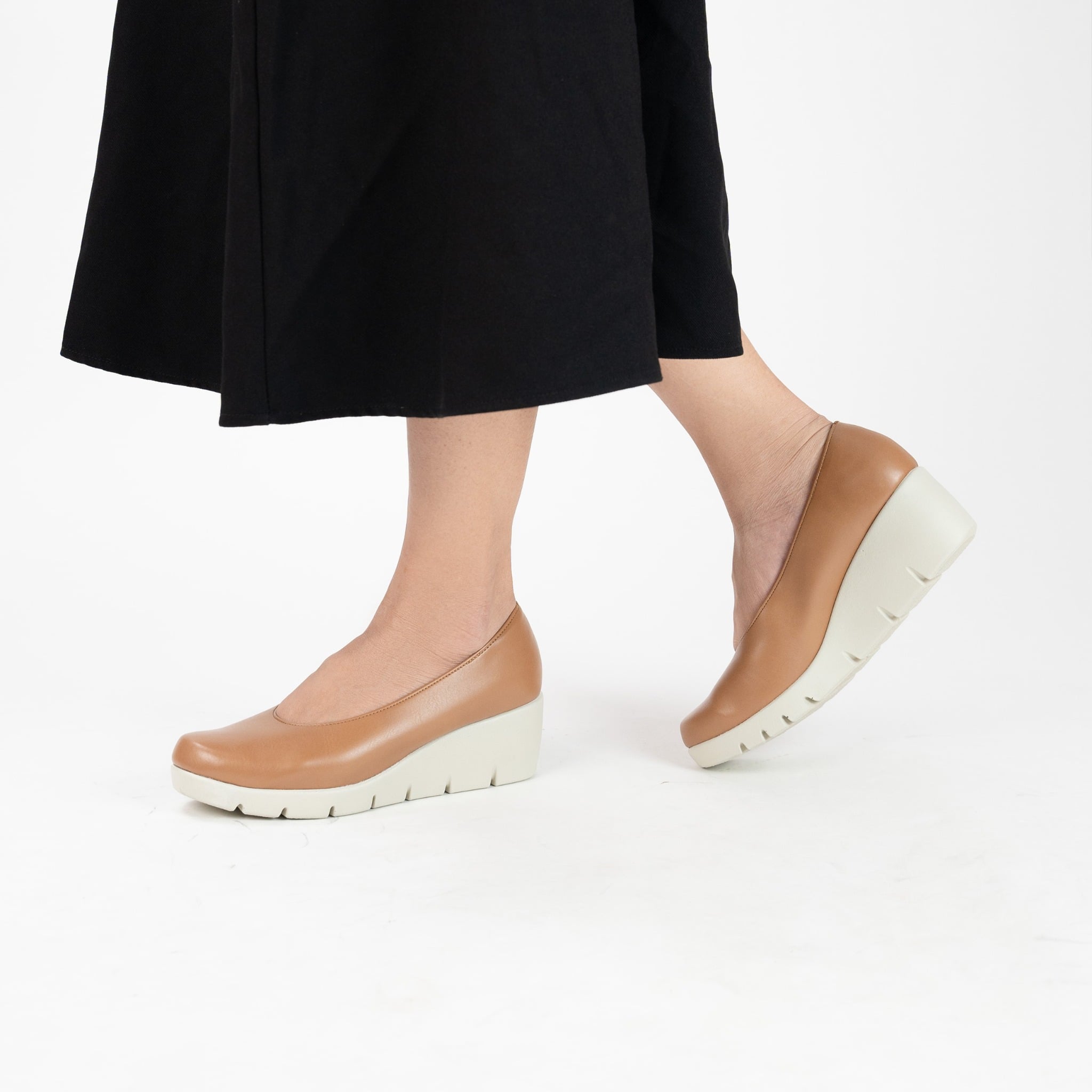 Loại giày đế xuồng hack chiều cao và cực kỳ tôn dáng, đế chắc chắn dễ di chuyển. Bạn không cần lo lắng "đế to đi nặng chân và khó nhấc" bởi chất liệu đế Urethane rất nhẹ, đồng thời mặt đế tạo các rãnh nhỏ để tăng độ linh hoạt khi di chuyển, dễ dàng uốn cong theo từng chuyển động của bàn chân.