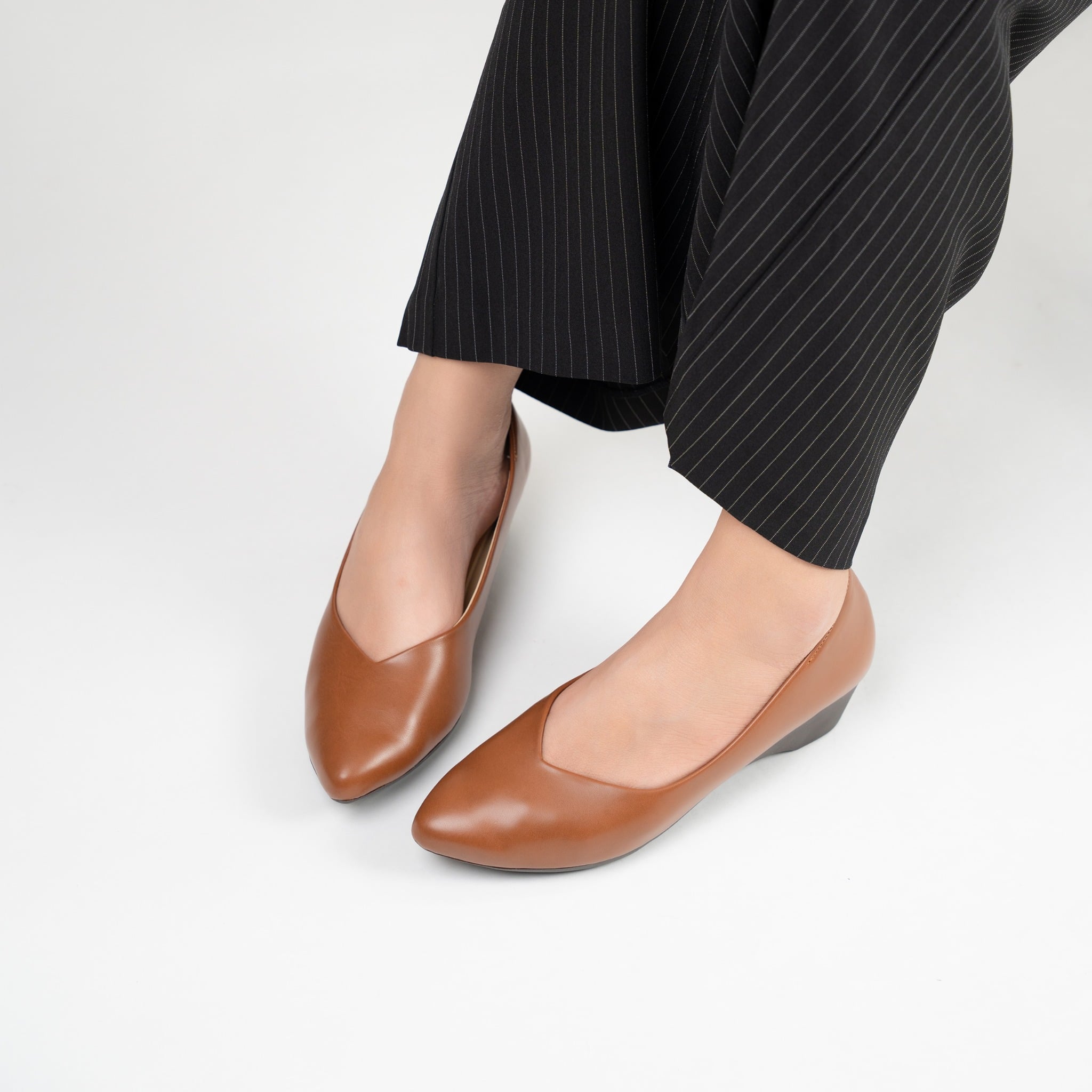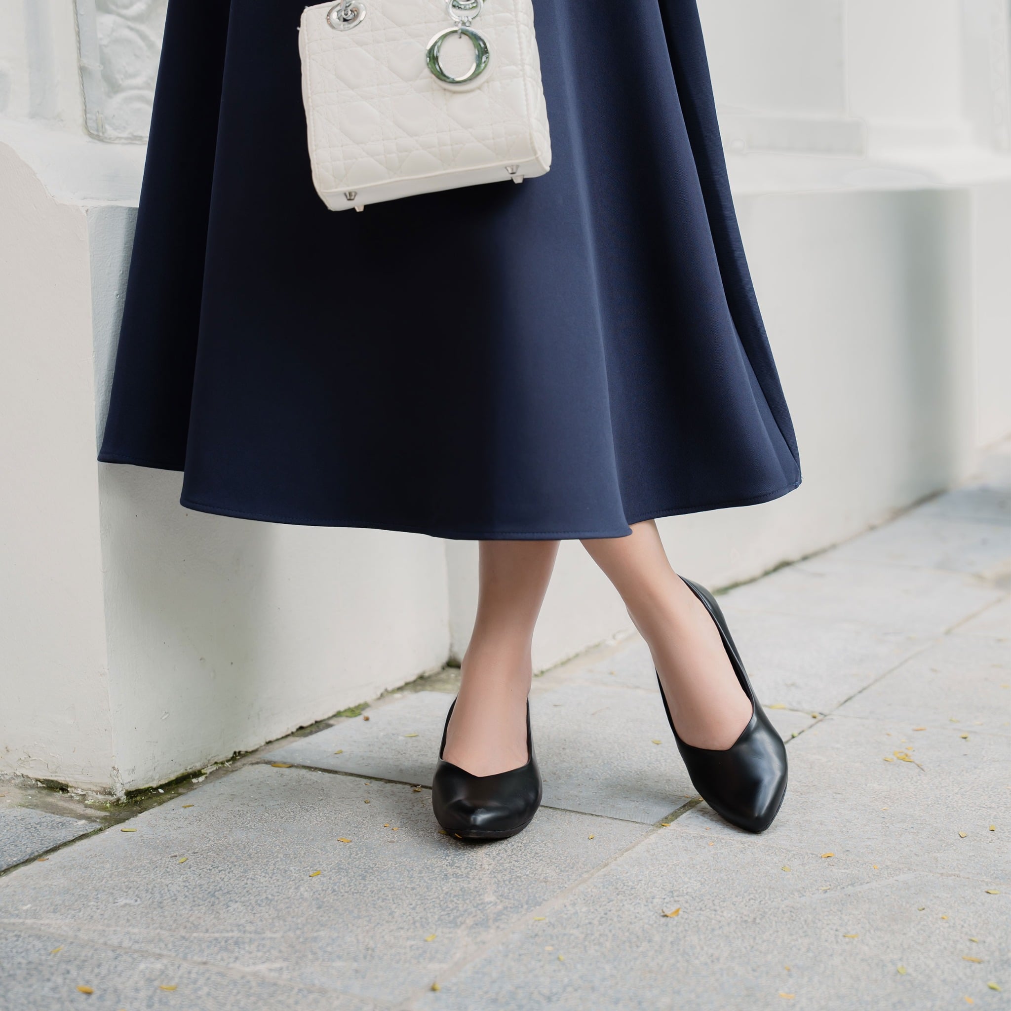 Đế giày dạng wedge (đế xuôi liền khối), cao khoảng 4 cm theo thông số sản phẩm. Kiểu đế này giúp phân tán áp lực khi đi bộ, tạo cảm giác ổn định hơn so với gót mảnh, đồng thời vẫn “nâng nhẹ” để chân trông thanh thoát. Đế cao nhưng không quá cao, phù hợp cho việc đi bộ nhiều mà ít mỏi chân