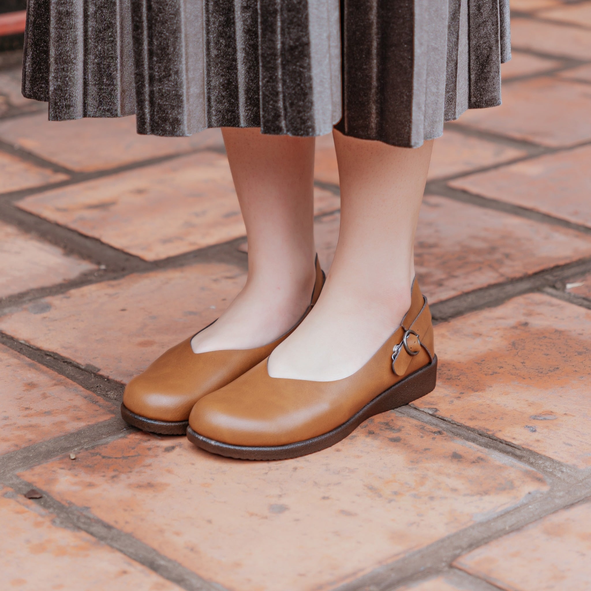 Mũi giày tròn không gây ép đầu ngón chân, tạo cảm giác thoải mái tối đa cho bạn. Bạn có thể đi bộ dài mà không cảm thấy khó chịu.