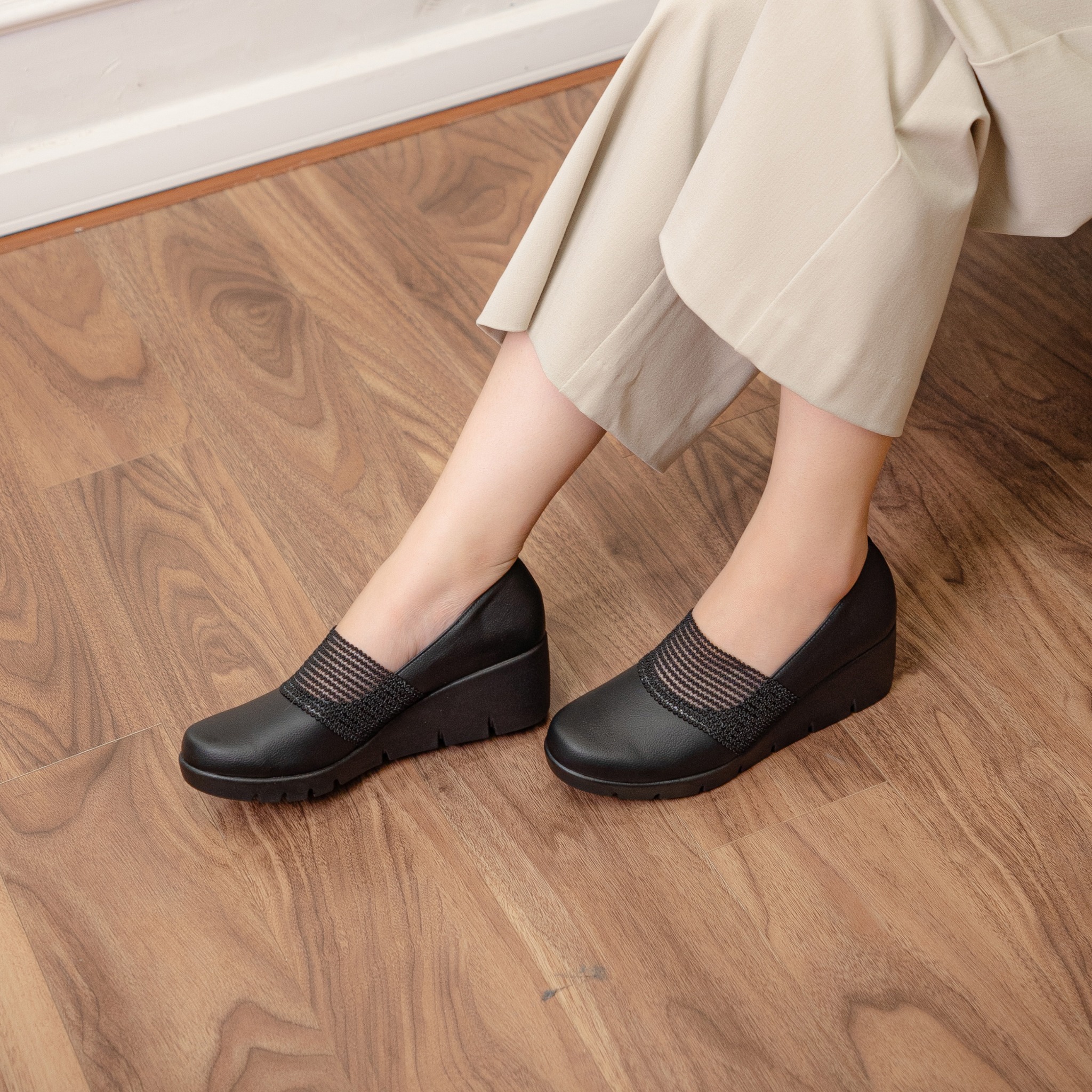 - Kiểu dáng: Giày đế xuồng, phối lưới