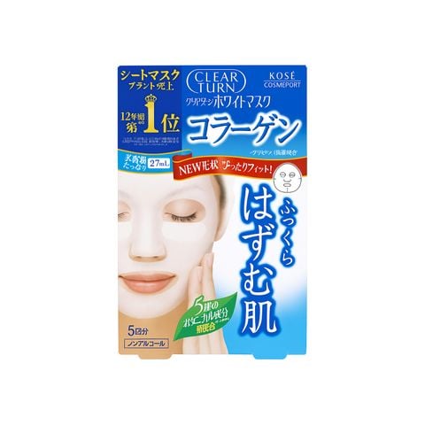 - Tên sản phẩm: Mặt nạ dưỡng trắng, bổ sung collagen Kosé Clear Turn 5 miếng