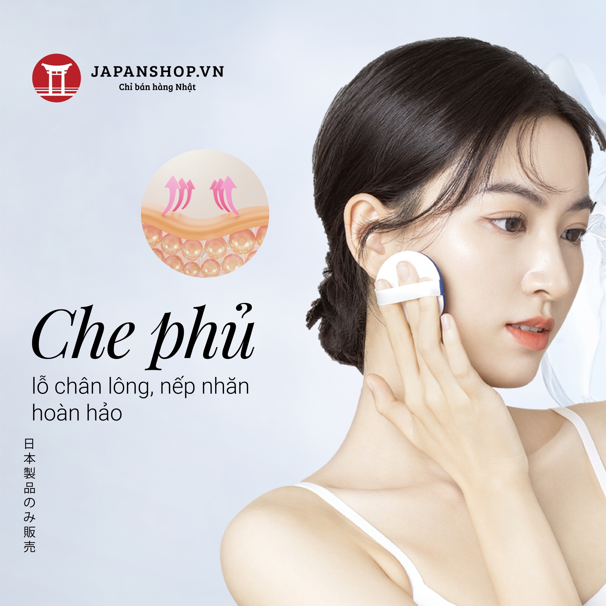 - Công nghệ dệt truyền thống lâu đời NISHIJIN Nhật Bản, giúp bông phấn chạm vào da mềm mại, mịn màng, mang lại cảm giác nhẹ nhàng êm dịu, ôm trọn mọi góc cạnh của gương mặt và giúp phấn nền tệp vào da tốt hơn.