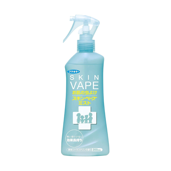 Xịt đuổi muỗi Skin Vape được thiết kế dạng phun sương, nhẹ nhàng, tiện dụng bảo vệ da bé khỏi muỗi và các loài côn trùng đốt trong thời gian dài. Sản phẩm chứa hoạt chất Deet với nồng độ không quá 10% cùng các thành phần giữ ẩm có nguồn gốc từ thực vật. Xịt đuổi muỗi Skin Vape bổ sung thành phần Acid Hyaluronic Na thân thiện với làn da, giữ cho làn da mềm mại và mịn màng.